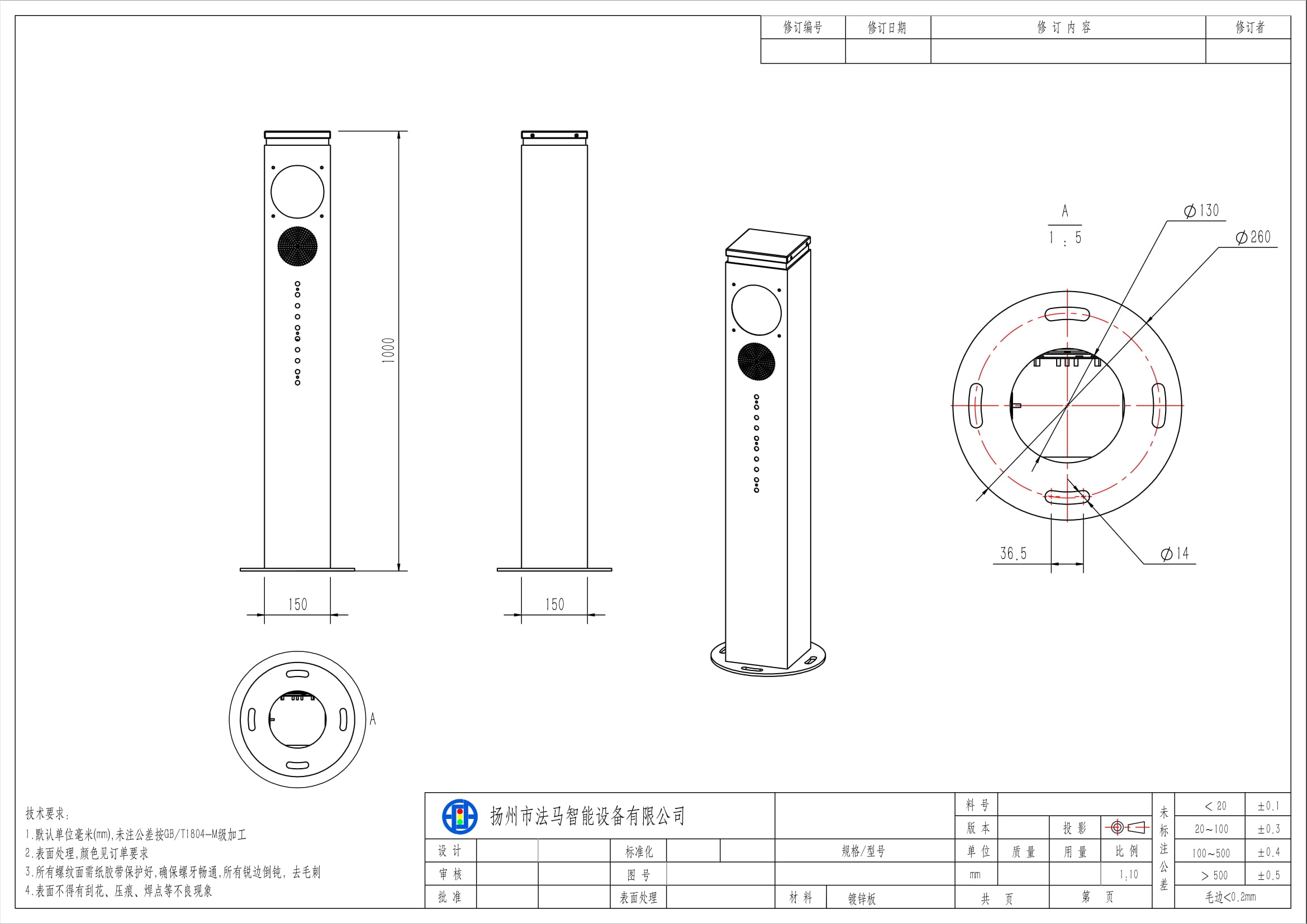 | Жалпы өлчөмдөр | 1200 × 180 × 180 мм (бир мамычалы) |