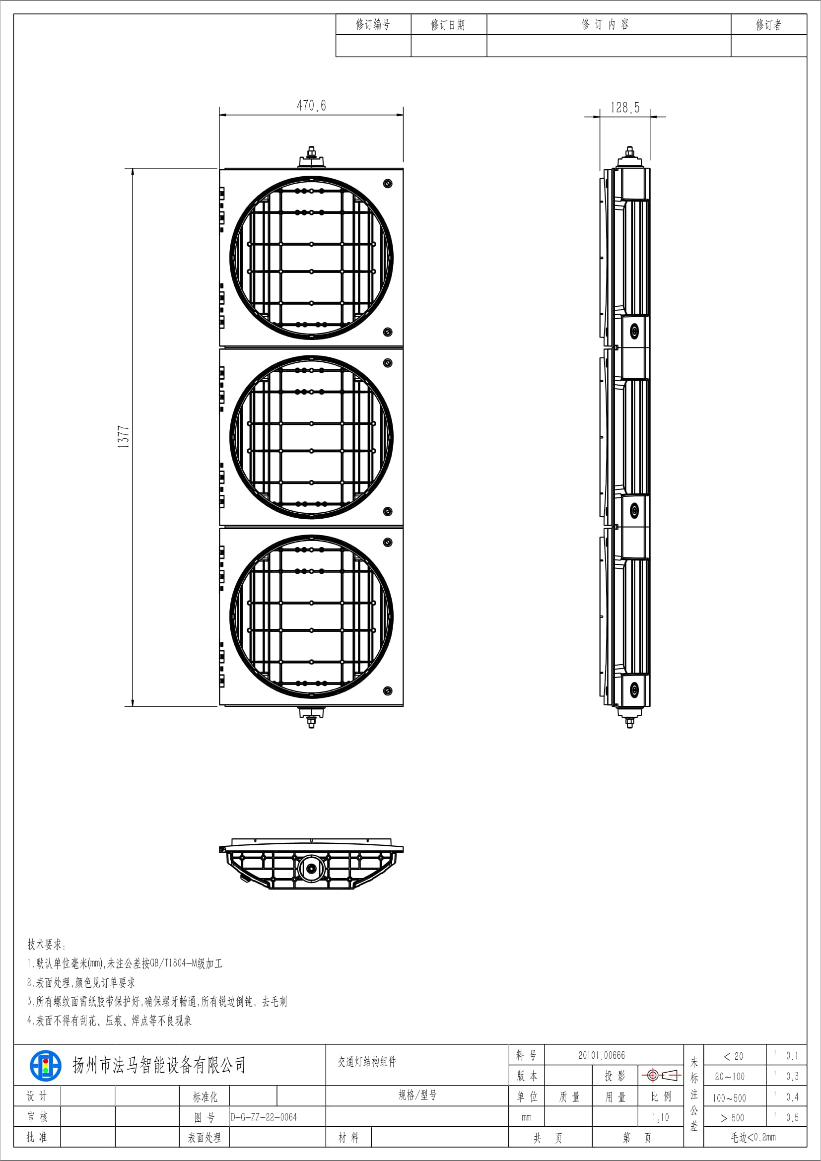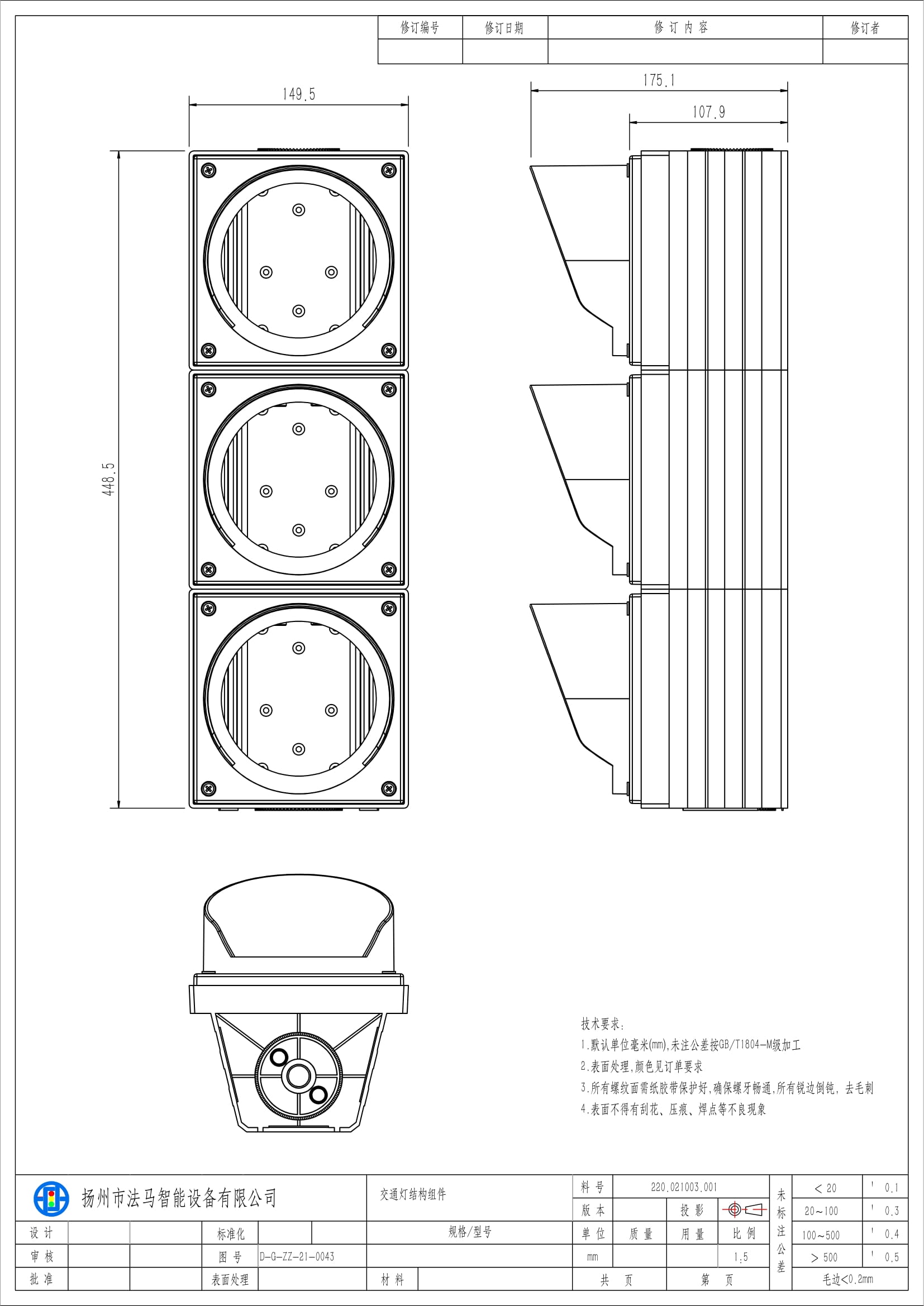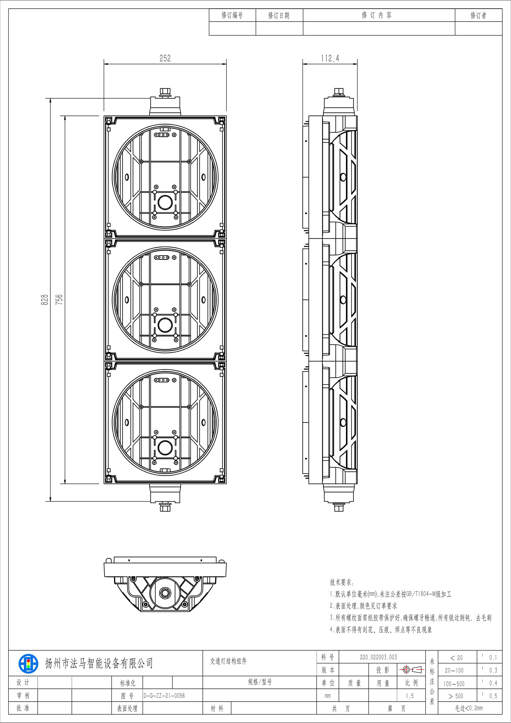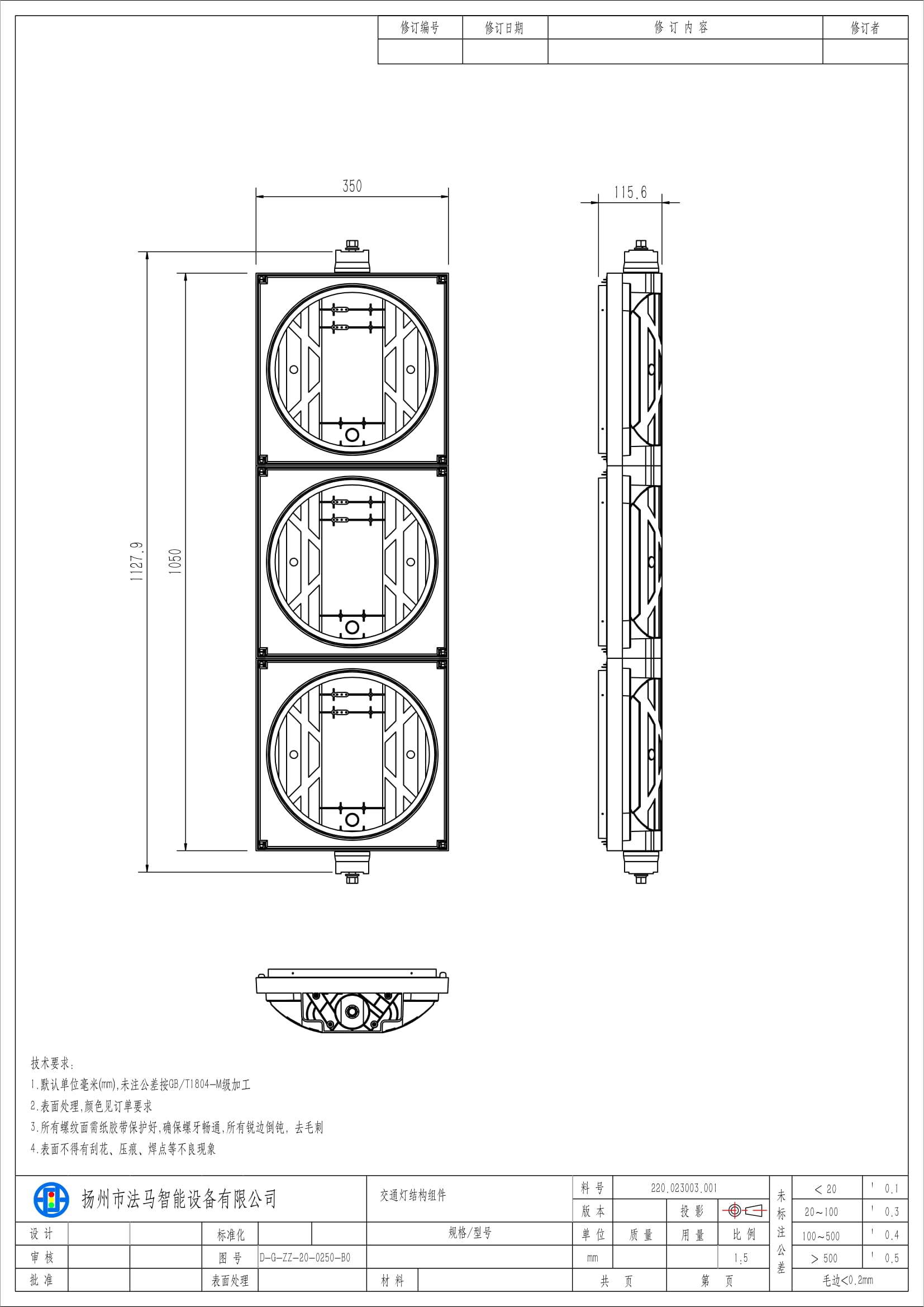Аз кубаттуулуктагы кызыл/сары/жашыл толук шарлуу светофор үч блоктон турат. Лампанын өзөгү лампа тактасы, оптикалык линза, кубат берүүчү модуль жана лампа табагы сыяктуу негизги компоненттерден турат. Бул продукт ар кандай жол чырактары менен башкарылуучу кесилиштерде колдонууга ылайыктуу.